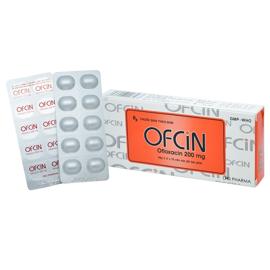 DƯỢC LỰC HỌC: Ofcin với thành phần hoạt chất chính là ofloxacin, kháng sinh nhóm quinolon, có phổ kháng khuẩn rộng bao gồm Enterobacteriaceae, Pseudomonas aeruginosa, Haemophilus influenzae, Neisseria spp., Staphylococcus, Streptococcus pneumoniae và một vài vi khuẩn Gram dương khác. Ofloxacin có tác dụng mạnh hơn ciprofloxacin đối với Chlamydia trachomatis, Ureaplasma urealyticum, Mycoplasma pneumoniae. Ofloxacin cũng có tác dụng đối với Mycobacterium leprae, và cả với Mycobacterium tuberculosis, và vài Mycobacterium spp khác. Ofloxacin có tác dụng diệt khuẩn. Giống như các thuốc quinolon kháng khuẩn khác, ofloxacin ức chế DNA - gyrase là enzym cần thiết trong quá trình nhân đôi, phiên mã và tu sửa DNA của vi khuẩn.